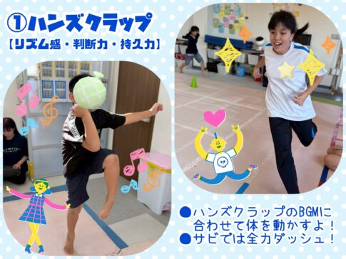 放課後等デイサービスのアプリコ甲府です☀️✨ 9/1(月)〜9/6(土)の運動紹介🏃♀️ ①ハンズクラップ【養われる力】 リズム感・判断力・持久力【参加人数】 10人〜15人みんな大好きなハンズクラップ💃❤️BGM...