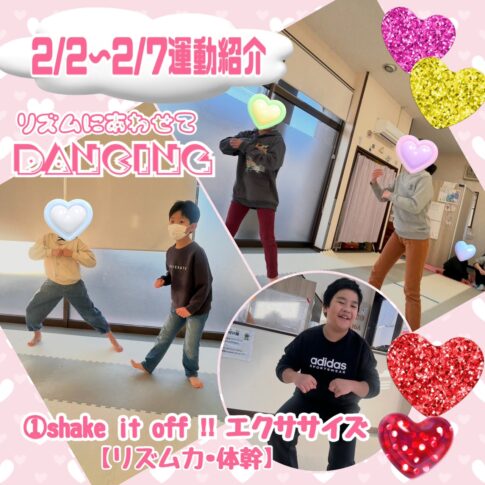 ①shake it off!! エクササイズ 【リズム力・体幹】 new☆音楽に合わせてエクササイズ運動!10人以上のお友達がみんなで一斉に出来る運動です。リズムに合わせて動くということがとっても楽しいです!アプリコの子...