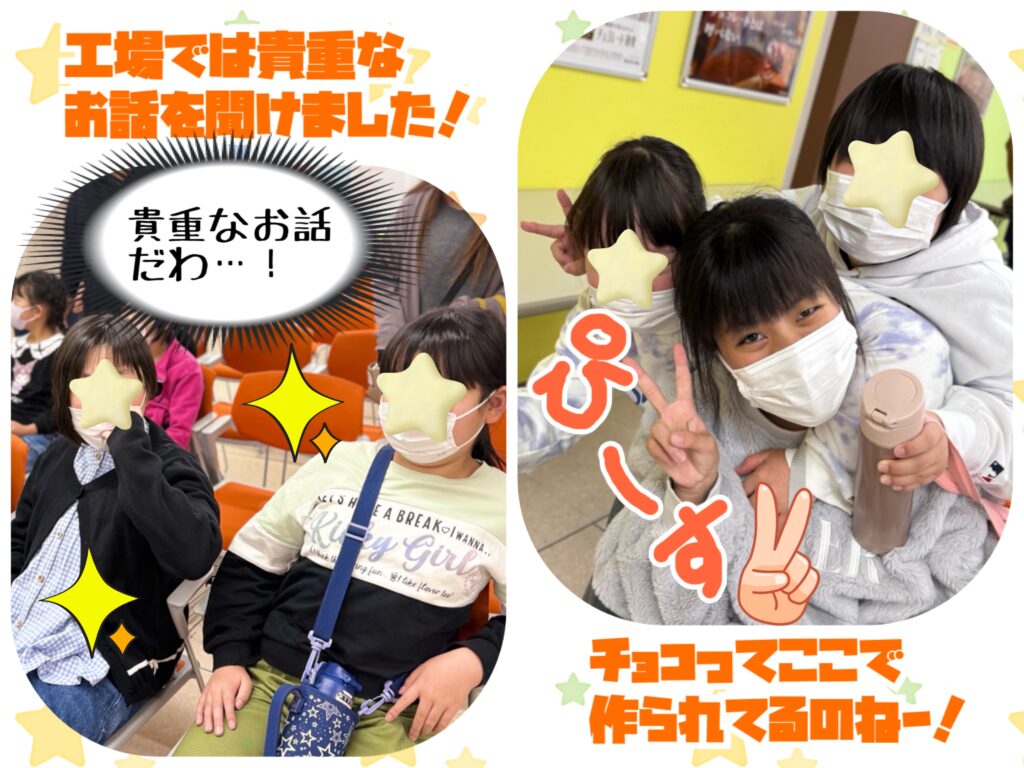 チョコレート工場では、スタッフさんからお菓子作りの貴重なお話を聞かせていただき、実際にチョコなどのお菓子を作る過程を見学させていただきました🍫