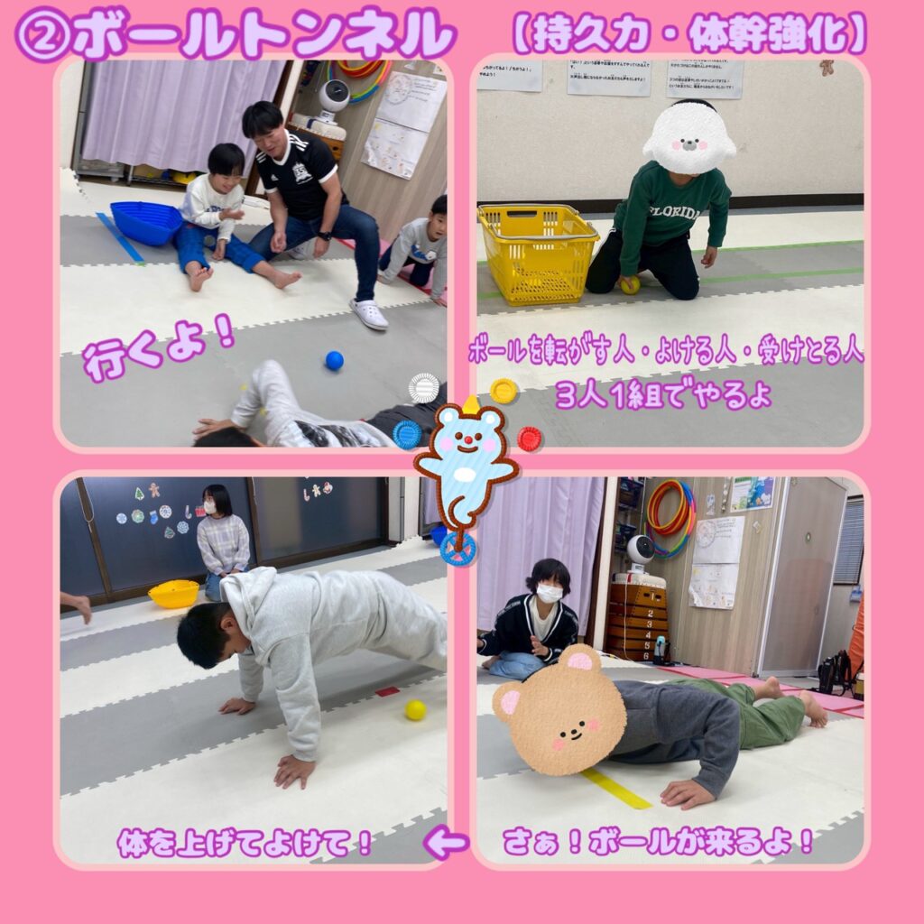 体幹や腕の力が刺激され、入れ替わりのある楽しい運動でした☆
