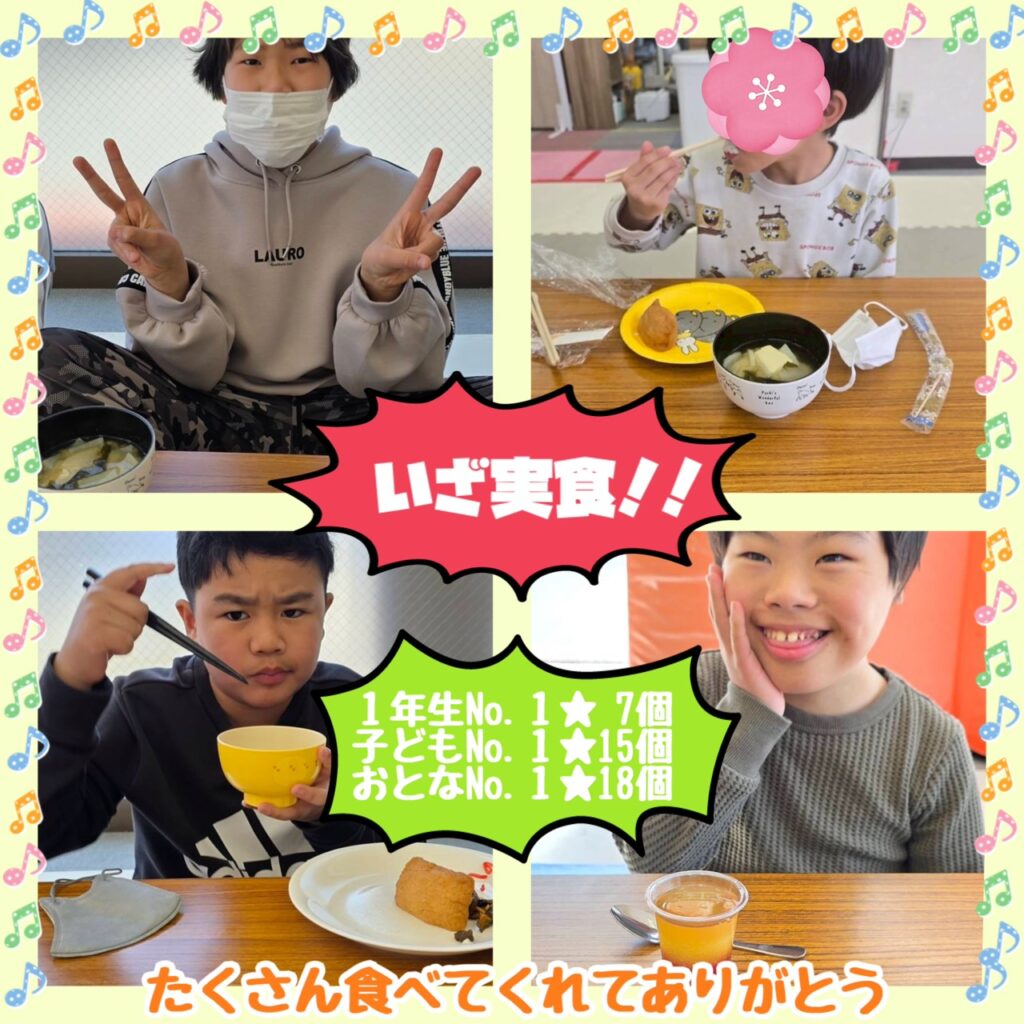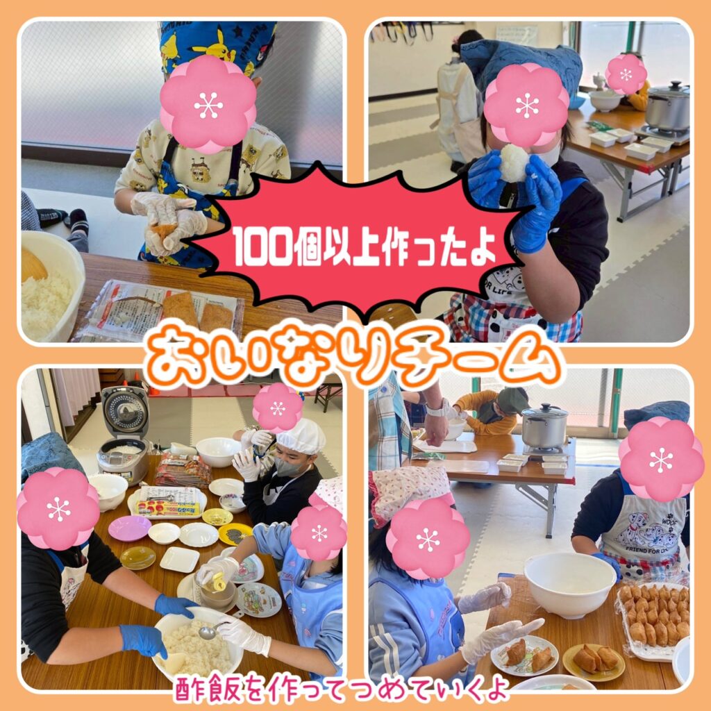 初めて、おいなりさんを食べたお友達がいましたが、そのお友達も4つ食べてくれました。