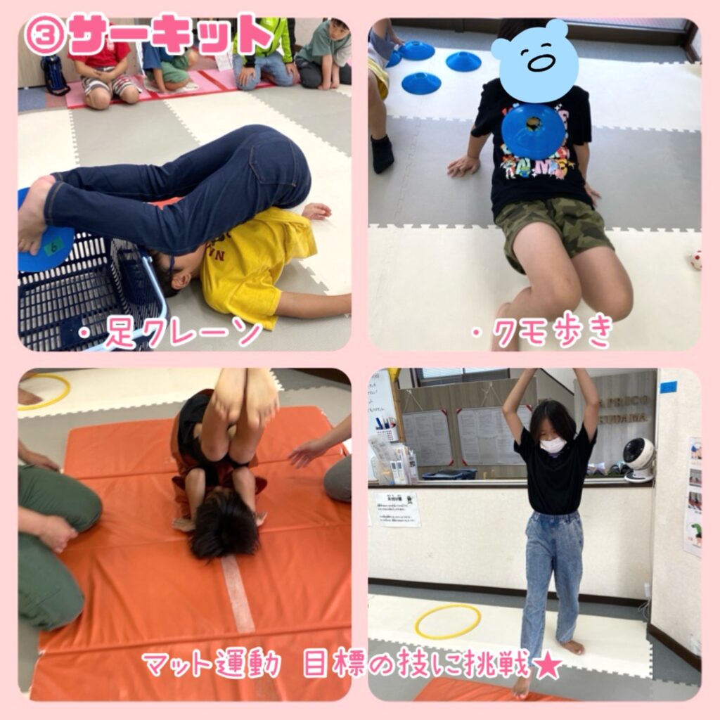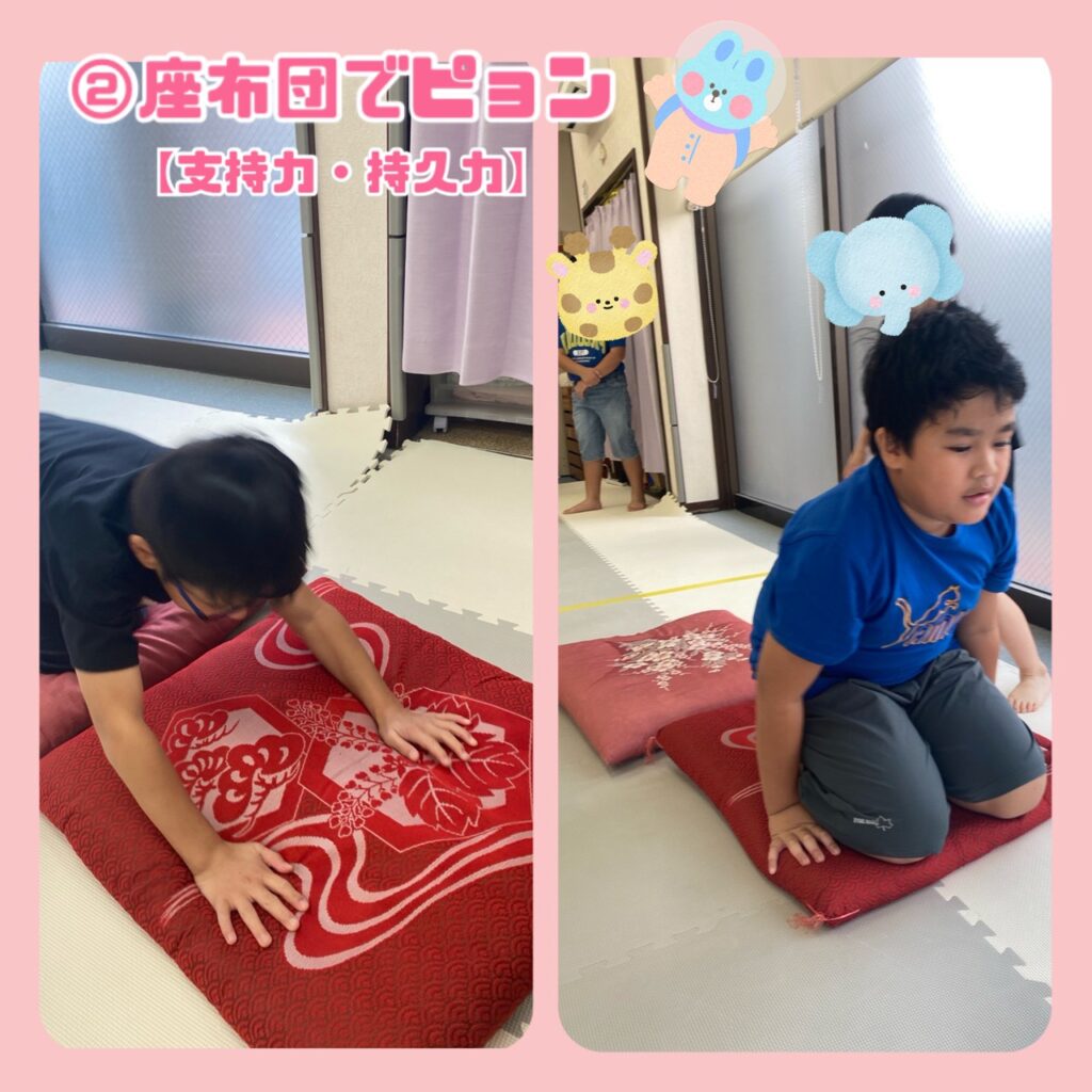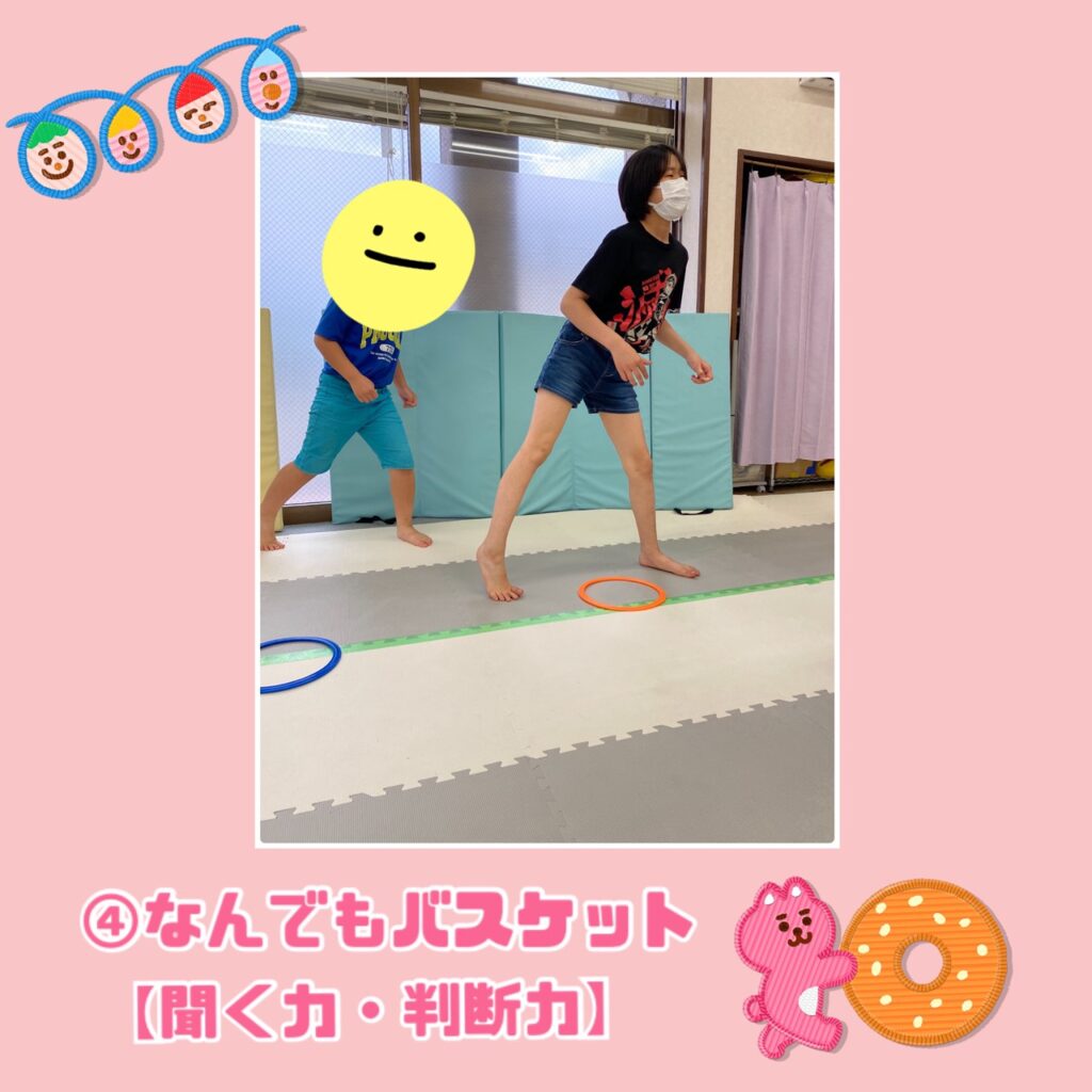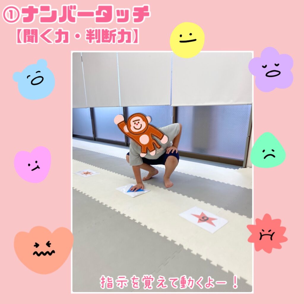 職員が「1・2・△!」と数字と図形の指示を出したり、「赤・青・黄!」の色で指示を出します。