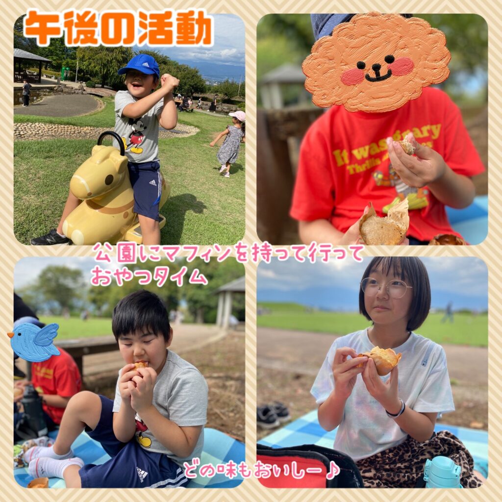 遊具や芝生で遊んで、おやつは手作りマフィンを食べました♪